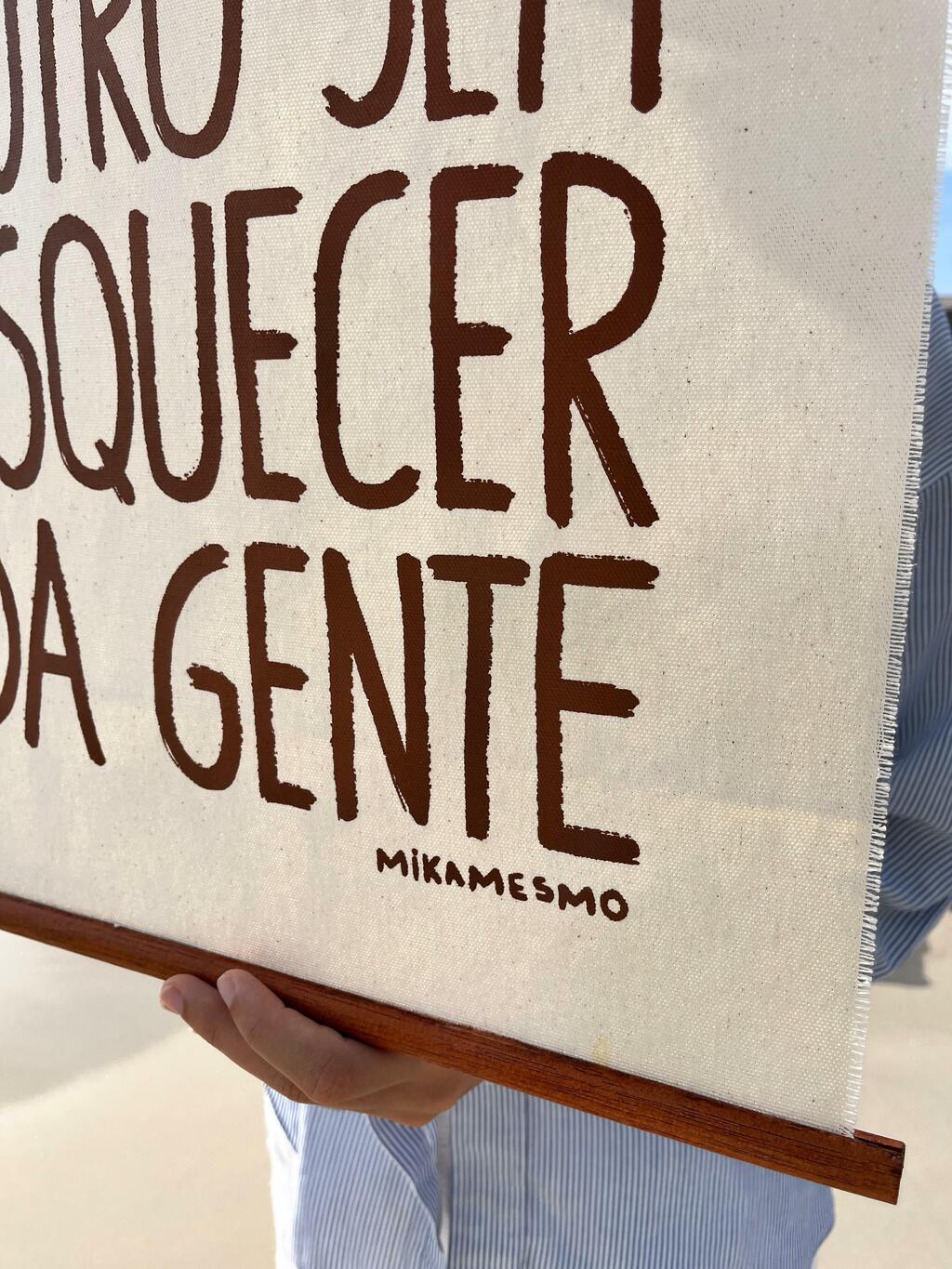 Uma bandeira com a frase: Cuidar da gente sem esquecer do outro